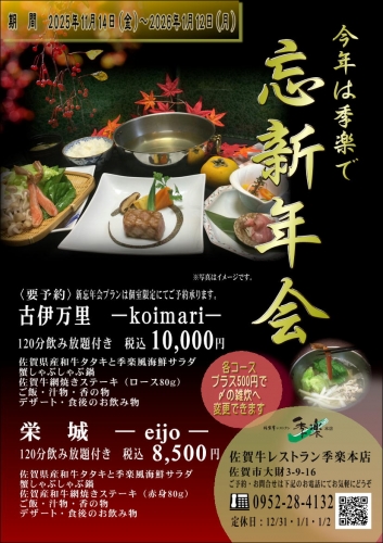 今年一年の感謝を込めて、また新な年の始まりを祝して、季楽本店では『忘新年会プラン』をご用意いたしました。