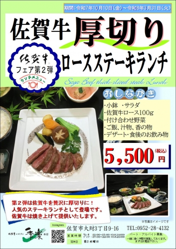 佐賀牛 特別メニュー『佐里』延長のご案内【季楽本店】
